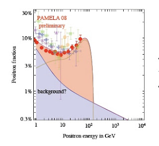 Aside from all the fuss about how data were taken, embargo policies, and all that, the data (if confirmed) appear very interesting. The positron ratio (i.e. the relative number of positrons with respect to the sum electrons+positrons) appears to increase above 1 GeV, contrary to the expectations based on simple astrophysical models. There is then room for an “exotic” explanation, in terms of the annihilation of Dark Matter particles.